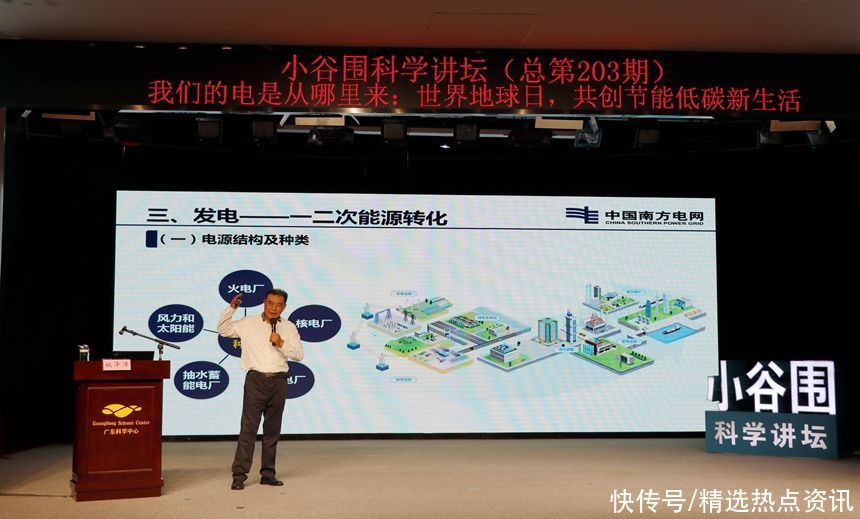 人民网广州4月24日电 (李语、黄欣然)4月22日,由南方电网广东电网公司与广东科学中心共同举办的小谷围科学讲坛电力低碳科普讲座在广东科学中心举办。电力专家、教授级高级工程师蚁泽沛做主题为《我们的电从哪里来——世界地球日,共创节能低碳新生活》的讲座,呼吁更多的人参与到环保运动中,通过绿色低碳生活,改善地球环境。